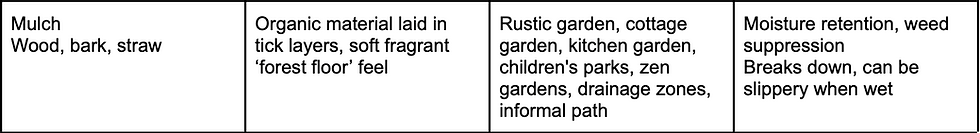 beige to grey, acts as a brilliant reflector and brightens up shady corners, making neighbouring plants pop. I use it for gardens where formal paving feels too heavy, but most recently - in a sun bleached gravel garden as a mulch for drought tolerant plants like Rosemary, Pittosporum and Sedum. It can also be used as a decorative material around a modern water feature or sculpture. Pairing effortlessly with more robust materials, a path of pea shingle leading to